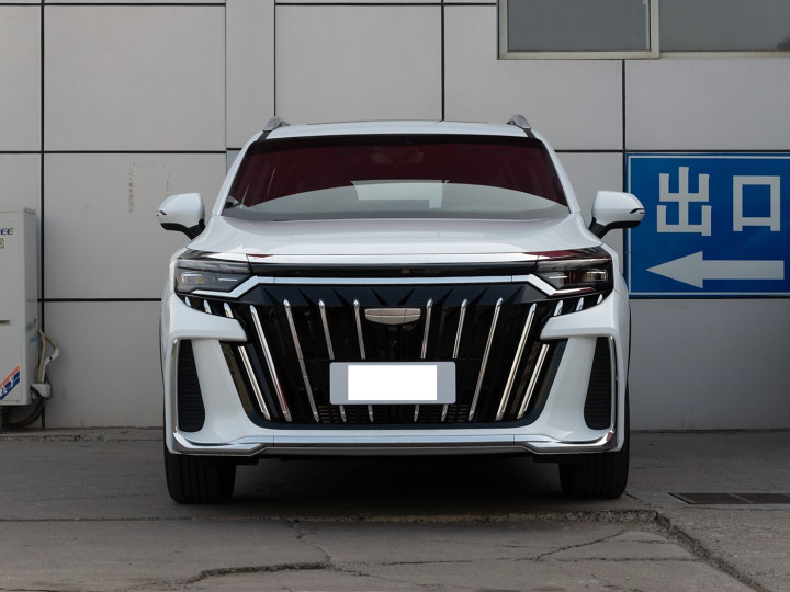 我们首先来看新车的外观设计方面,2025款豪越L前脸采用“天地美学”家族设计语言,换装全新“百川归流”直瀑式进气格栅,镀铬竖条如瀑布般倾泻而下,搭配银色车标Logo,营造出磅礴气势。前包围两侧的导流槽造型边缘点缀L状镀铬饰条,与分体式LED大灯形成视觉呼应,既保留了硬朗的肌肉感,又增添了几分精致。这种设计语言让车头在静止时也呈现出不怒自威的气场,同时兼顾了年轻家庭用户的审美需求。